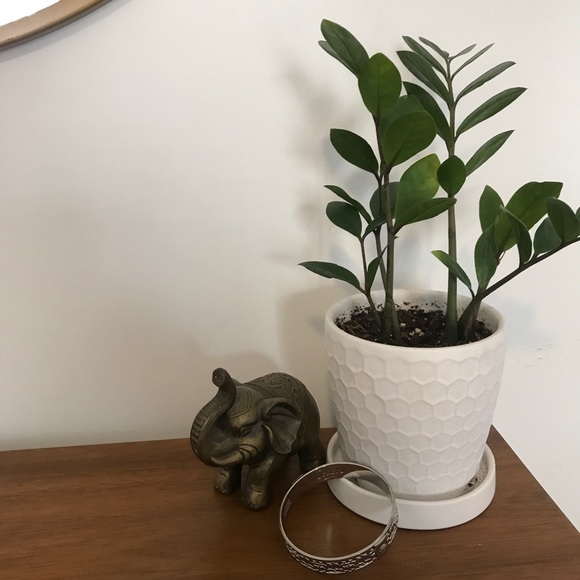 Silver signature Coach Bangle. Very sophisticated! The bracelet does not have a hinge, and the hole is 2.6 inches across.