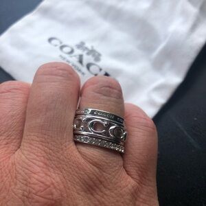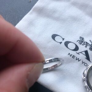 This exquisite set of Coach rings showcases a stunning silver finish with intricate detailing, perfect for adding a touch of elegance to any ensemble. Each ring in the collection features unique patterns, reflecting the brand's commitment to craftsmanship and style. Ideal for both everyday wear and special occasions, these rings are a timeless addition to any jewelry collection. Size 8. Silver. Diamond. Brand new without tags. Never worn. Coach pouch included!