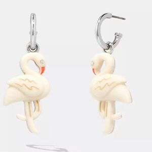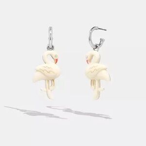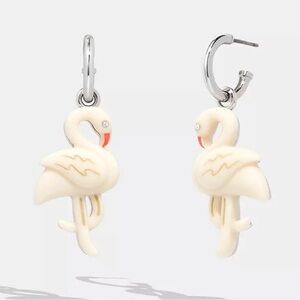 Coach Silver & White crystal rhinestone studded Flamingo Huggie Earrings new