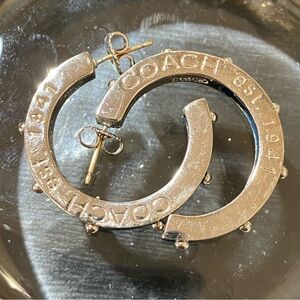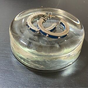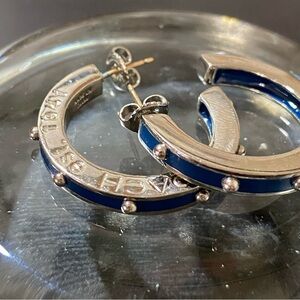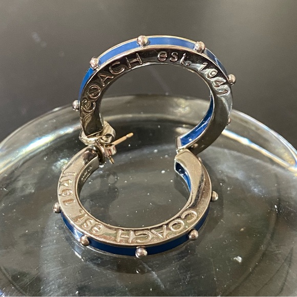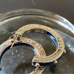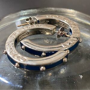 Coach Silver and Blue Hoop Earrings