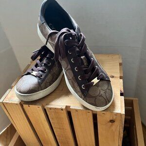 luxury, monogram, logo, casual, comfort, designer, Coach sneakers, low top sneakers, lace-up sneakers, brown sneakers, travel, commuter, everyday, basic, athleisure, school, luxury brand