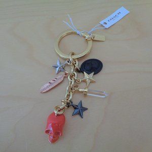 Coach Skull Cameo Feather Crystal Stars Key Ring Key Chain KeyFob Bag Charm NEW