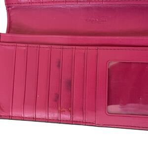 Coach Slim Accordion Leather Snap Wallet in Magenta Pink FLAWS