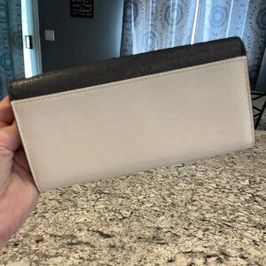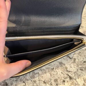 Beautiful Coach long envelope wallet. Zipper section and tons of cards slots. Clean interior and one small spot on bottom exterior. Please see all photos for any wear as shown.