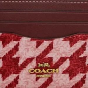 Coach Slim ID Card Case With Houndstooth Pink/Red - NWT