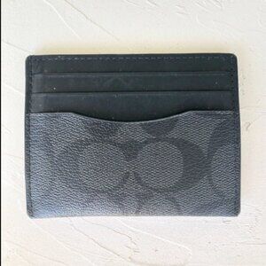 Coach Slim Id Card Holder Case Signature Canvas Charcoal/Black Wallet