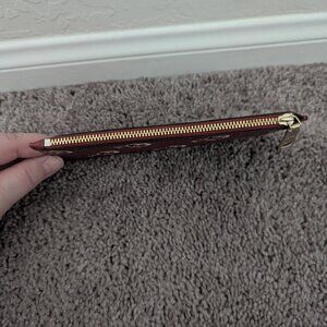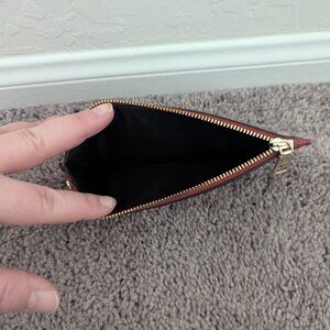 This listing is for a Coach Slim Zip Pouch in the color red with a red and white floral pattern. This pouch measures 7 inches (Length) and 3 inches (Width). The pouch is pre-owned and has been used, but there are no callouts or odors to the pouch. Great for carrying cards, cash or coins as they are able to lay flat in the pouch. Thank you for looking !!
