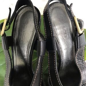 Coach Slingback Open Toe Leather Wrap Heeled Sandal Black 8
