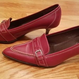 Authentic EUC Coach Women Slip On Loafers Size 7.5B Burgundy Leather, Slim kitten Heel