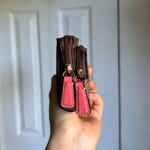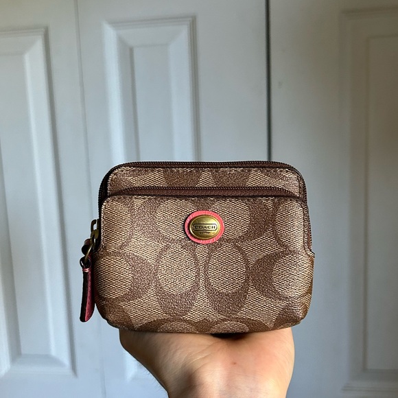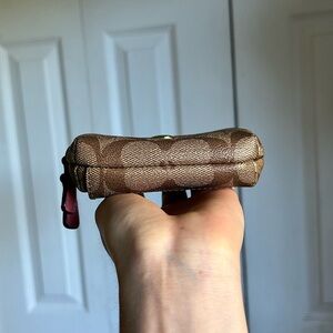 coach card wallet in signature brown and tan monogram multiple compartments clean interior no stains or tears
