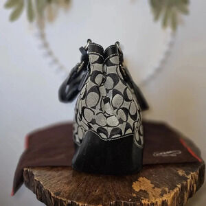 Coach Small Carryall Tote Bag Black Gray Signature Logo Canvas Leather 6830