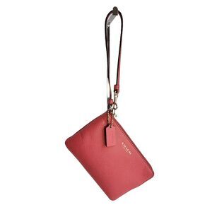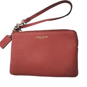 Coach Small Corner Zip Wristlet Pouch Wallet Salmon Saffiano Pebble Leather