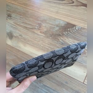 Coach Small Corner Zip Wristlet Pouch Wallet Signature Logo Black Gray