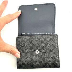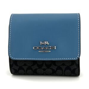 Coach Small Trifold Wallet Colorblock Micro Signature Canvas Light Mist CF369