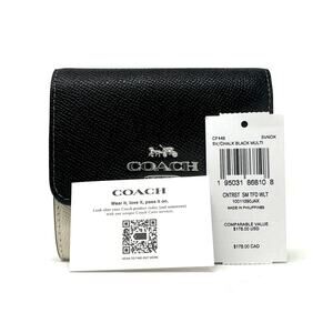 Coach Small Trifold Wallet Chalk White Black Multi Leather CF446