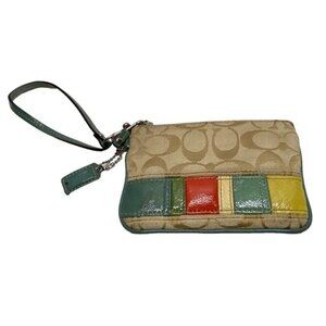 Coach Small Wristlet Multicolor Colorblock Wallet Signature Khaki Canvas GUC