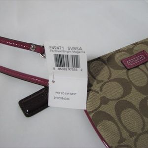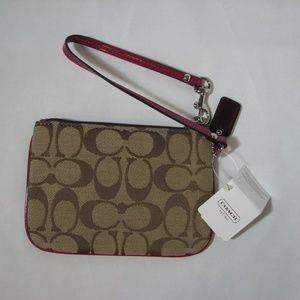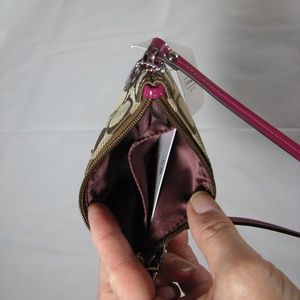 Coach Small Wristlet Park Signature NEW Canvas Logo Purse Khaki Magenta
