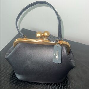 Chic black clutch with gold frame. Unique hexagonal shape. Ideal for stylish outings.