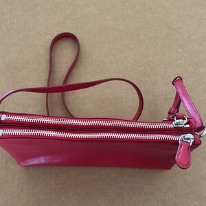 Coach Smith Crosby Red Silvertone Hardware Double Zip Leather Crossbody