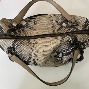 Grey snake python leather Smythe bag from Coach. Top handle and long detachable strap. See photos for wear.