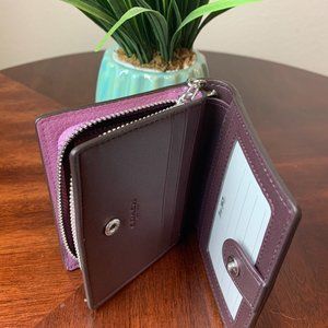 Features: Three credit card slots| ID window| Full-length bill compartment| Snap closure| Outside zip coin pocket