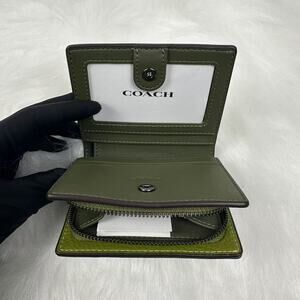 Coach Snap Wallet In Leather/Silver/Light Olive C2862 NWT
