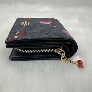Coach Snap Wallet In Signature Canvas With Pink Cherry Print Gold/Denim Blue NWT