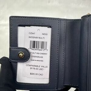 Brand new with tags, Coach Snap Wallet In Signature Canvas With Pink Cherry Print Gold/Denim Blue CZ347 NWT
