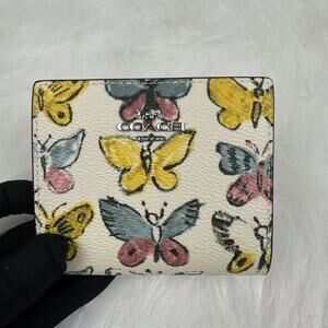 Coach Snap Wallet With Butterfly Print In Canvas/Silver/Chalk Multi CAP10 NWT