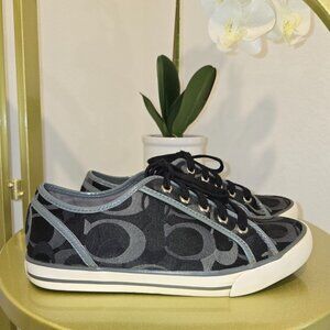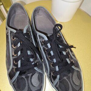 Coach Sneakers, Black and Grey color, size 8 1/2. Shoes have been worn and shows sign of wear at back heel, otherwise there in good condition.