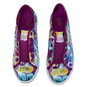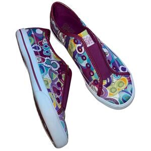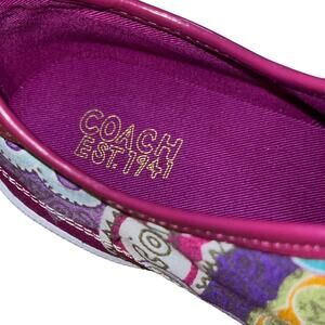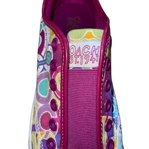 Vibrant Coach Bev Poppy slip-on sneakers! In excellent pre-owned condition, these size 7B sneakers feature a colorful, multicolor design that features iconic branding.