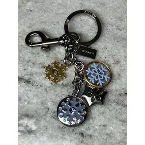 Coach Snowflake Cluster Bag Charm Snow Flake Fob Keychain Silver Sparkle C7100