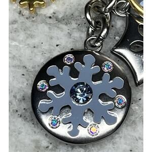 Adorable snowflake themed key chain with 4 snowflakes. Gently used or unused. No flaws noted. Metal is in excellent condition, and the jewels are pretty and sparkly! See photos.