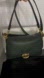 Sophisticated Coach shoulder bag in dark green leather. Features elegant gold hardware. Perfect for versatile styling.