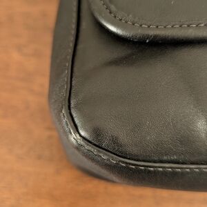 Small part of leather missing on the corner of the flap. does not affect functionality