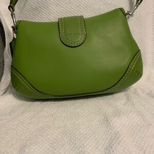 Coach soho in dark lime, this is a reedition. Slight wear on the flap. Not very noticeable even in person. Otherwise great condition.