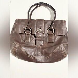 Coach Soho Big Buckle Leather Handbag Hobo Vintage Chocolate Brown Flap