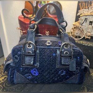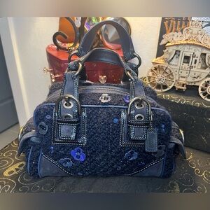 Coach Soho Midnight Blue Tweed & Suede Leather Sequin East West Satchel #10071