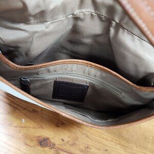 There is a magnetic button closure for securing your items and the interior fabric lining nice shade of tan. The bag is medium in size with