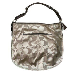 Coach Soho Sateen Signature Hobo Bag Gold Khaki Brown Tote