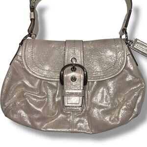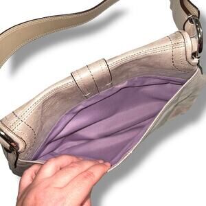 Y2K 1990s Soho Flap Pleated Leather Sufflette Bag Buckle Champagne F15204 Coach
