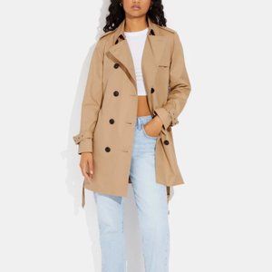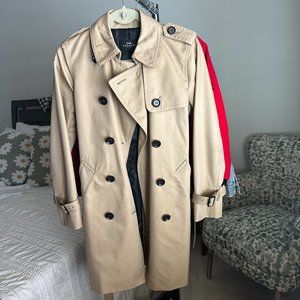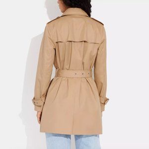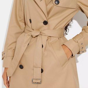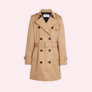 68% cotton, 32% polyester Lining: 58% polyester, 42% viscose Button closure Slip pockets Adjustable belt Water-resistant Great condition, tiny shadow/light mark on left side of bodice - can be removed with spot clean