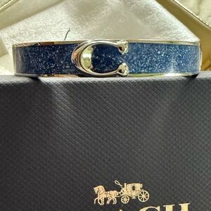 Coach Sparkling Blue and Silver Bangle Bracelet With Iconic C In Center NWT