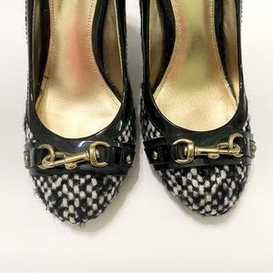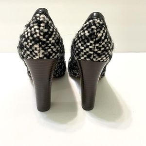 Beautiful pair of classic elegant black and white textured wool Coach heels.