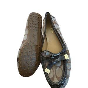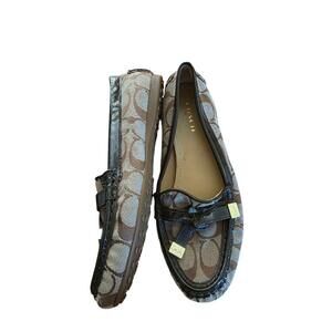 Coach Stacie Slip On Loafers Brown Bow Accent Signature Womens US 6.5