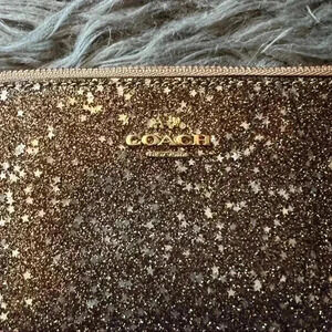 Coach Star Glitter Gold Printed Coated Canvas Corner Zip Wristlet Wallet