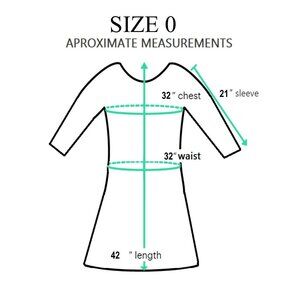 Approximate measurements: Chest 32", Waist 32", Length 42", Sleeve 21"