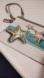 Chic wristlet by Coach featuring a playful starfish print. Accented with teal and cream tones.
