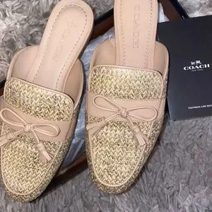 Beautiful like new Coach mule/slide. Neutral color, with the perfect shimmer of gold. Very gently worn and the perfect accent to any closet.
