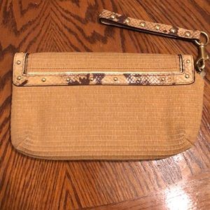 Coach Clutch Wristlet, Straw with Python Snake Trim with Python chained wristlet.